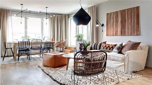 瑞典的设计公司 MOOD HOUSE INTERIOR 设计的这间住宅,以简单好搭配的暖灰作为空间的基底颜色,藤制和木制的天然材质家具搭配上棉麻材质大地色系的软织品,带给空间一股轻柔舒适的感受,再摆上几盆植物妆点是不是就像身处在大自然一样,试着布置这样舒适又放松的自然系民族风,它或许能给你带来不同以往的居家感受。