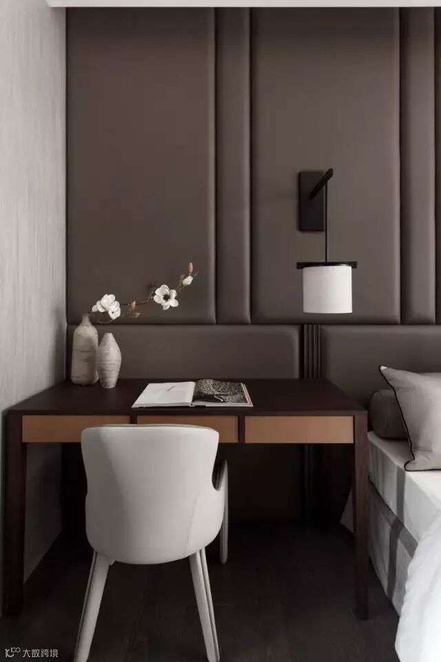床头柜的面积所限,体量不会太大,基本和台灯等陈设搭配运用。
