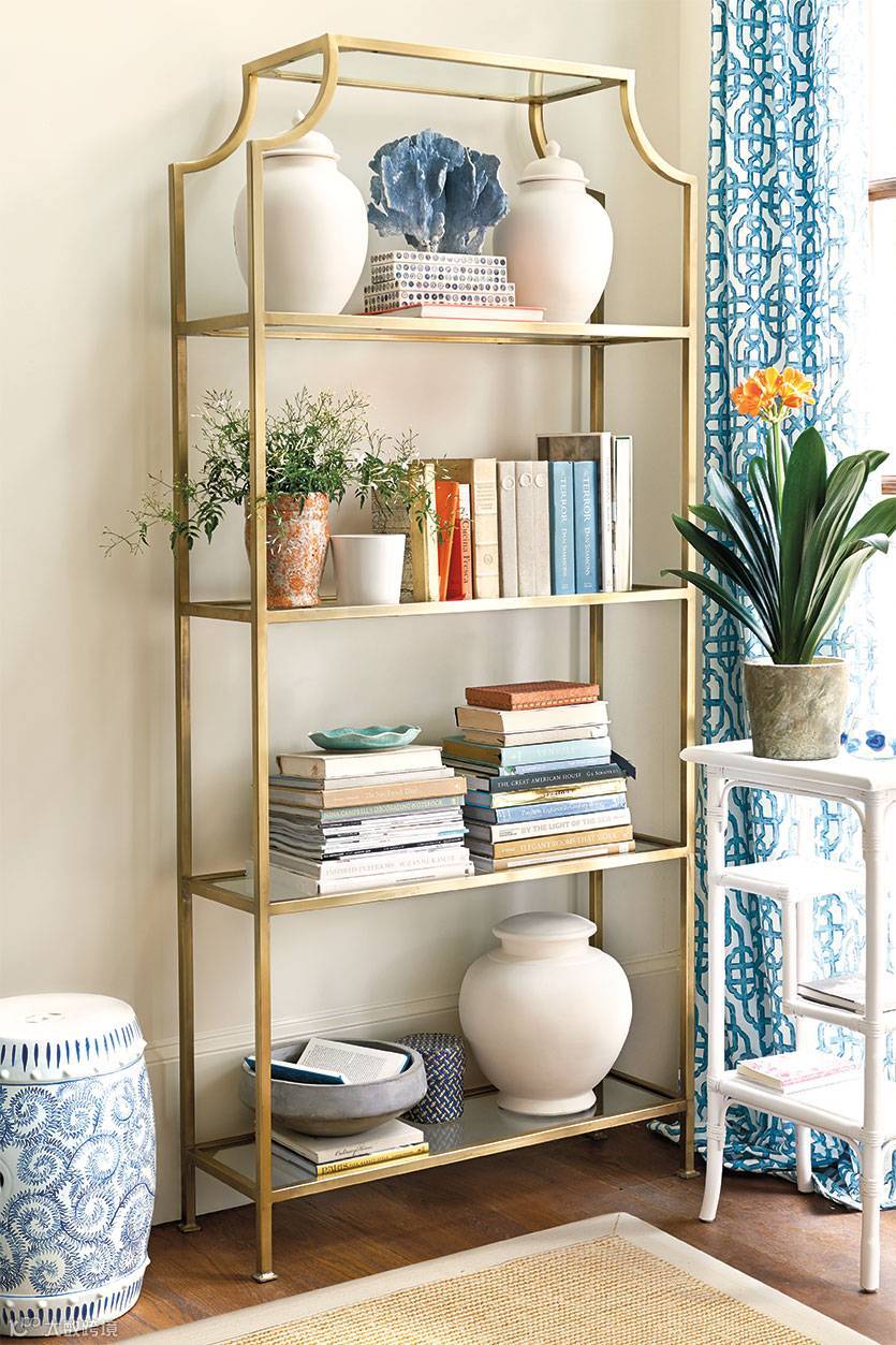 假如你是个书虫,或者是书籍收藏爱好者,你就拥有了第一个得天独厚的有利条件——一堆堆的书,而书架当然是要放书啦,让一个书架变得有腔调的最好办法就是放书,关键就是如何将每一格摆放的错落有致,平放的,竖放的,靠在一边的。假如有什么你特别喜欢的封面就可以将其面朝外放,就如图里的一样。没那么多书咋办捏?就放些时尚杂志吧,甚至可以买书盒来充数也是很不错的选择。