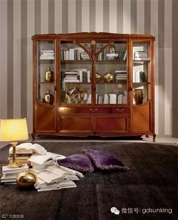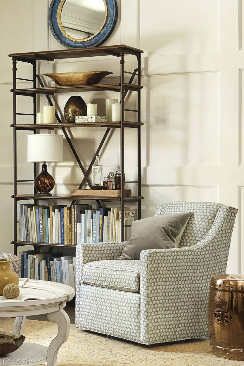 在小空间里,书架的每一层都可以放置不同的物品,使其功能更加多样化,这里的书架底下几层用来放书,中间那一层就放了托盘,酒和台灯,多变的效果不但在视觉上更加惹眼,在你需要这些东西的时候,它们都在你手边,垂手可得。。