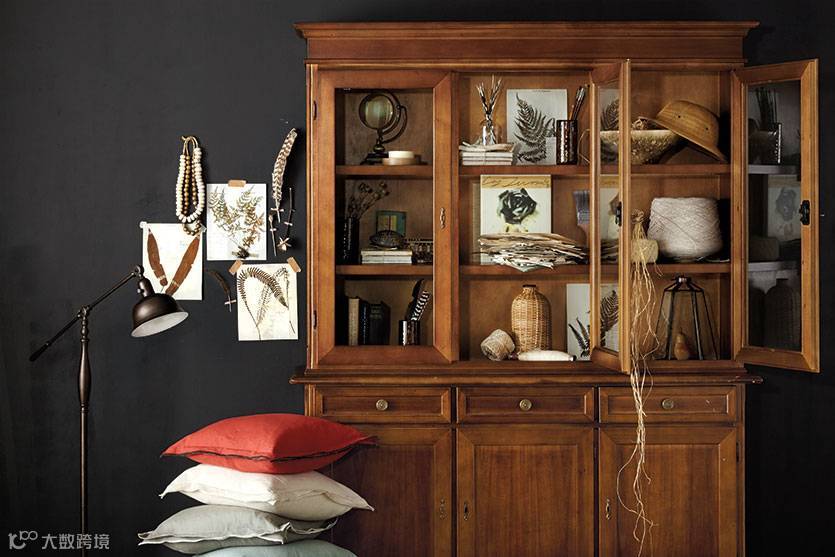 在色彩搭配中,体积庞大的深色木书架可以起到稳定空间的作用,深色也可以作为那些饰品的背景色,例如上图里的那些蓝白瓷器,在深色木纹的背景下更加显眼,再设想假如书架里就一个花瓶,会如何?效果很一般。这种组合式的摆放形式更加容易制造视觉焦点,记住,要用单数!
