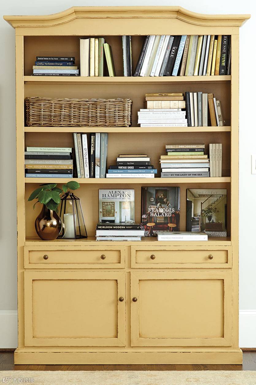 当你的书放好了之后,接下来就要考虑如何加入些小玩意了,最简单的办法是将一件饰品放在一堆平放的书的上面,或者放上个相框,再用各种其他小玩意,小雕塑将其余尚且宽敞的地方填上,什么碟子啊,小的画啊,小花瓶,小闹钟什么的都可以,但不要放得太满太多的小东西,每件东西要可以清晰的罗列开来。