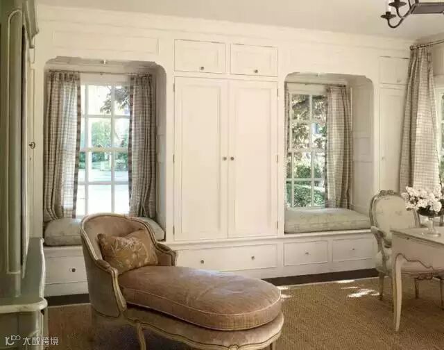如果飘窗的空间较大,也可以打造成一个休息的场所。配上软垫、窗帘、绒毯,就可以睡午觉啦!