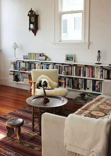 中国人的家庭,如果没有独立书房,通常会在客厅放一个大高书柜。而老外们则喜欢用矮长的矮柜放书,延墙一排。
