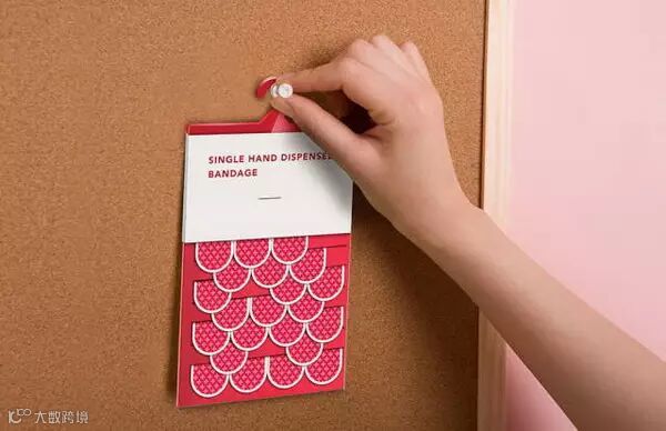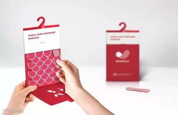 这款创可贴运用了龙鳞元素,喜庆的中国红也为其外观加分不少。最为可贵的是,它为消费者解决了医疗产品的过度包装问题。通常的创可贴包装,尤其在意外受伤状况下非常难撕开,而它的特殊结构使其只需一个动作便能使用。平时挂着放置,不容易忘记且取用十分快捷。这款设计获得了美国Adobe公司的设计成就奖。