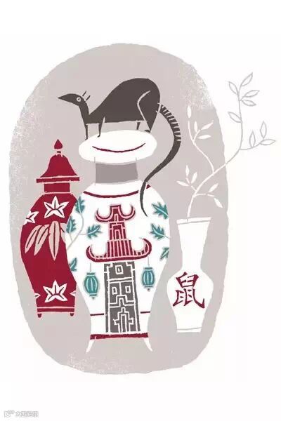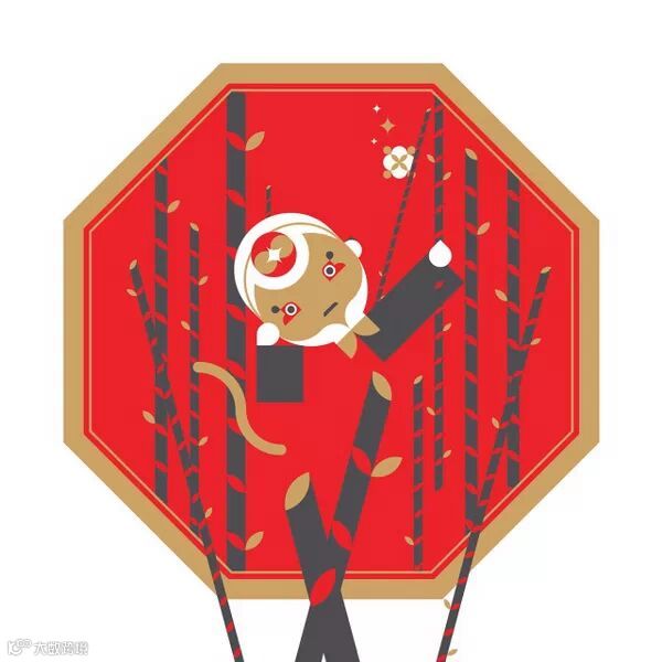 这系列生肖插图设计结合了中国的印章元素,图腾化的生肖和中国传统宝塔、瓷器与现代配色结合,显得大方且充满想象力。