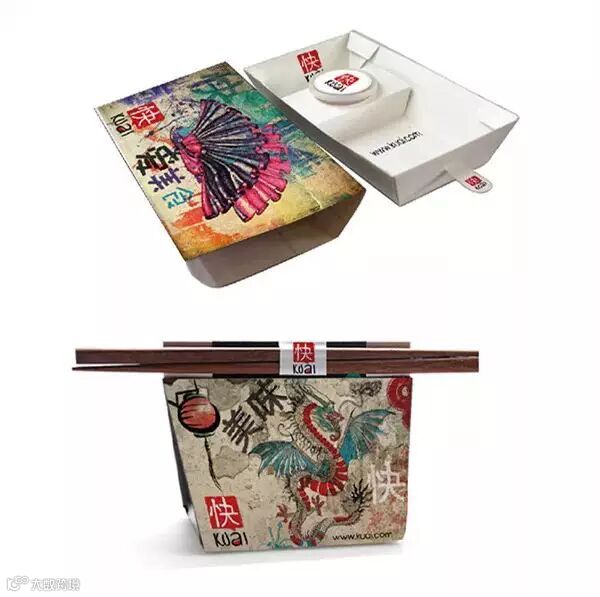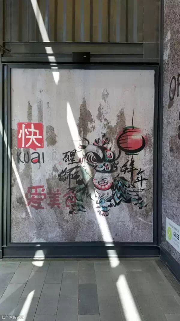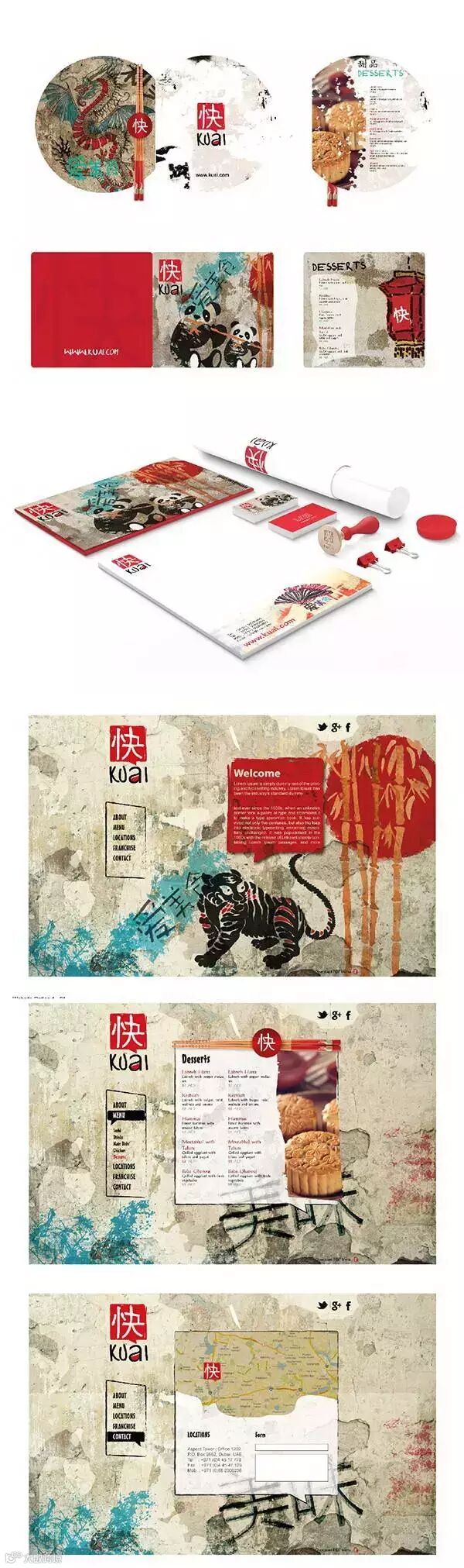 黎巴嫩设计师Neim Alghabra设计的“KUAI”中餐店UI非常有意思。借鉴中国“特色”墙上小广告,以龙、熊猫、茶壶、灯笼、舞狮等元素进行街头涂鸦作为宣传手段。店面装修和相关的购物袋、店员制服、外卖盒、菜单、官网等也是围绕这些元素展开。