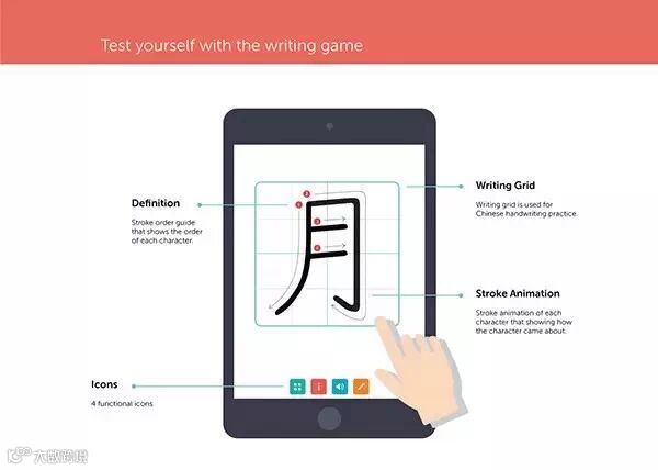 终于轮到老外来学习中文的时候啦!对于从未接触象形文字的老外来说,中文的比划无疑是书写中最大难点之一。这款APP设计能以最为简单明了的方式示范中文笔顺,并以英语解释每个单子的意思。除了APP,还有中文学习卡片进行辅助记忆。