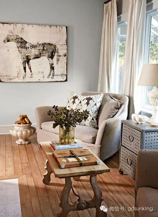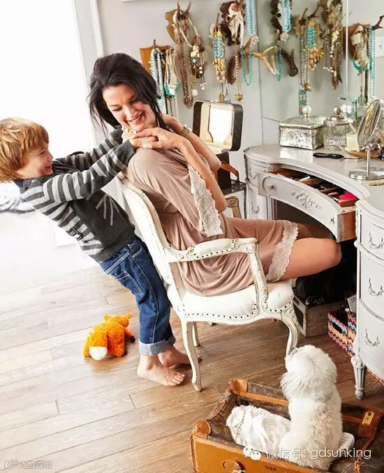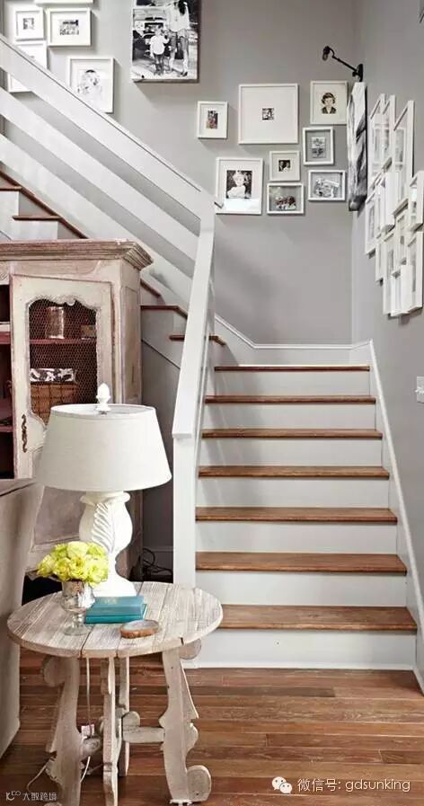 楼梯间和家人的照片为了搭配这个家新的乡村风格,原来的金属扶手换成了与楼梯平行的木栏杆,用金属丝擦过的橡木楼梯板底部被刷成了白色。家人的照片沿楼梯墙往上贴满了墙壁。 ![]()