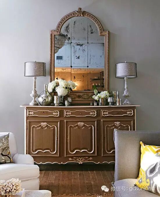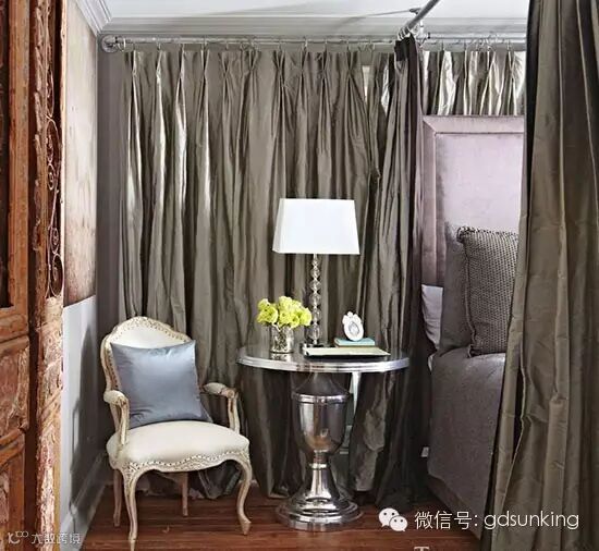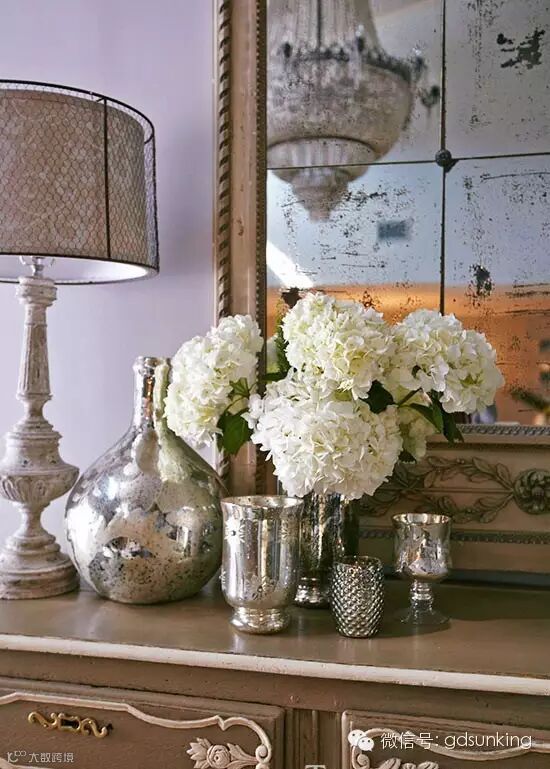 银色点缀一些银色的细节,如水银玻璃饰品和仿古玻璃,给房间增添了几分迷人的风情。 ![]()