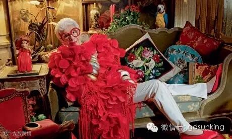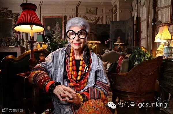 Iris Apfel出生在纽约皇后区,老爸是开玻璃厂的,老妈是俄国人,经营一家时装店,Iris Apfel就读于纽约大学主修设计史,作为一名年轻的女性,她开始为Women's Wear Daily 杂志工作,还在室内设计师Elinor Johnson的公司上班,并且还是插画家Robert Goodman的助理。