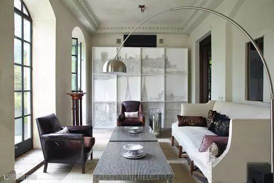◆个性落地灯取代吊灯。意大利灯具品牌Pallucco的Fortuny Ornaments落地灯将摄影棚灯的灵感引入家居空间,夸张的造型与强大的气场成为客厅里的焦点。