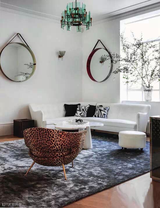 白色圆弧沙发优雅有余但分量感不强,豹纹扶手椅的加入很好地弥补了白沙发的轻佻,为客厅增强了时髦的摩登气场。