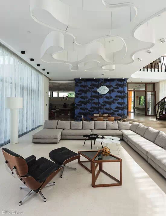 ◆用经典扶手椅点睛。Herman Miller的Eames躺椅十分打眼,像密斯•凡•德罗的巴塞罗那椅、勒•柯布西耶的LC3椅……绝对是在客厅里值得投资的家具,都能彰显出主人的不俗品位。
