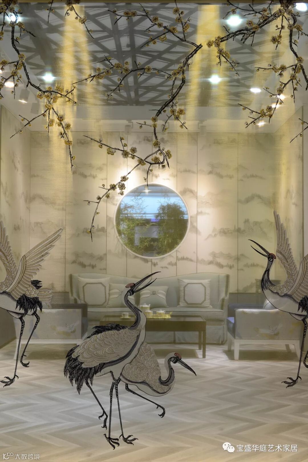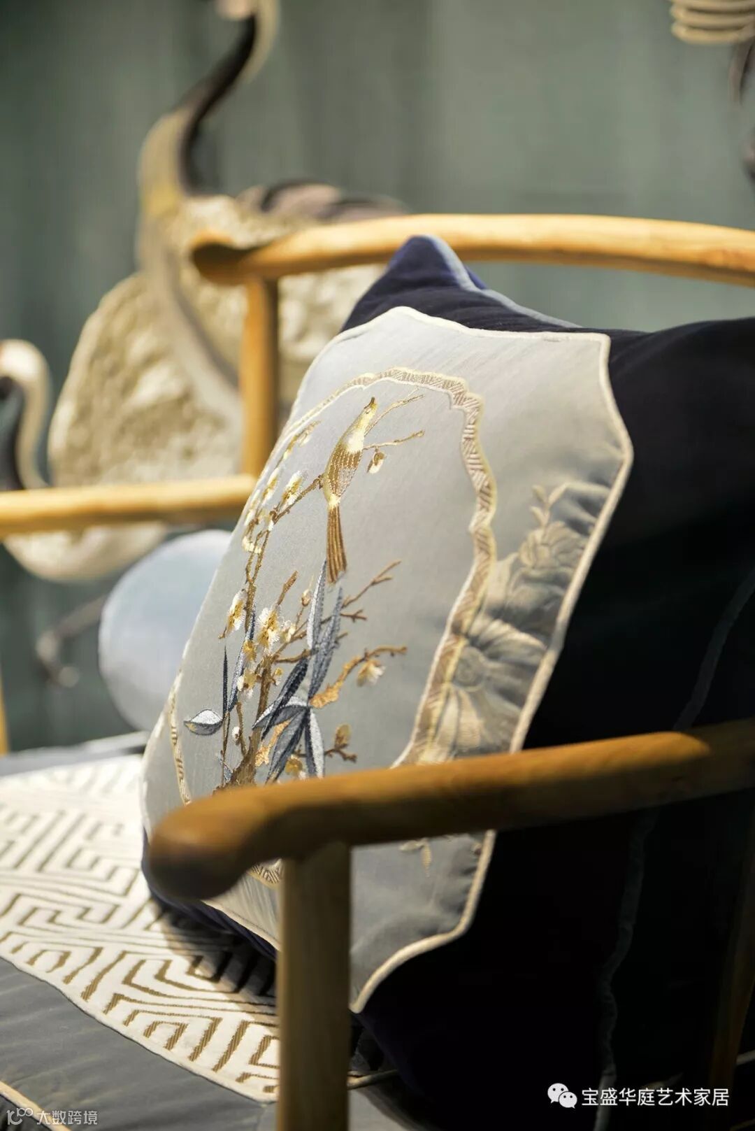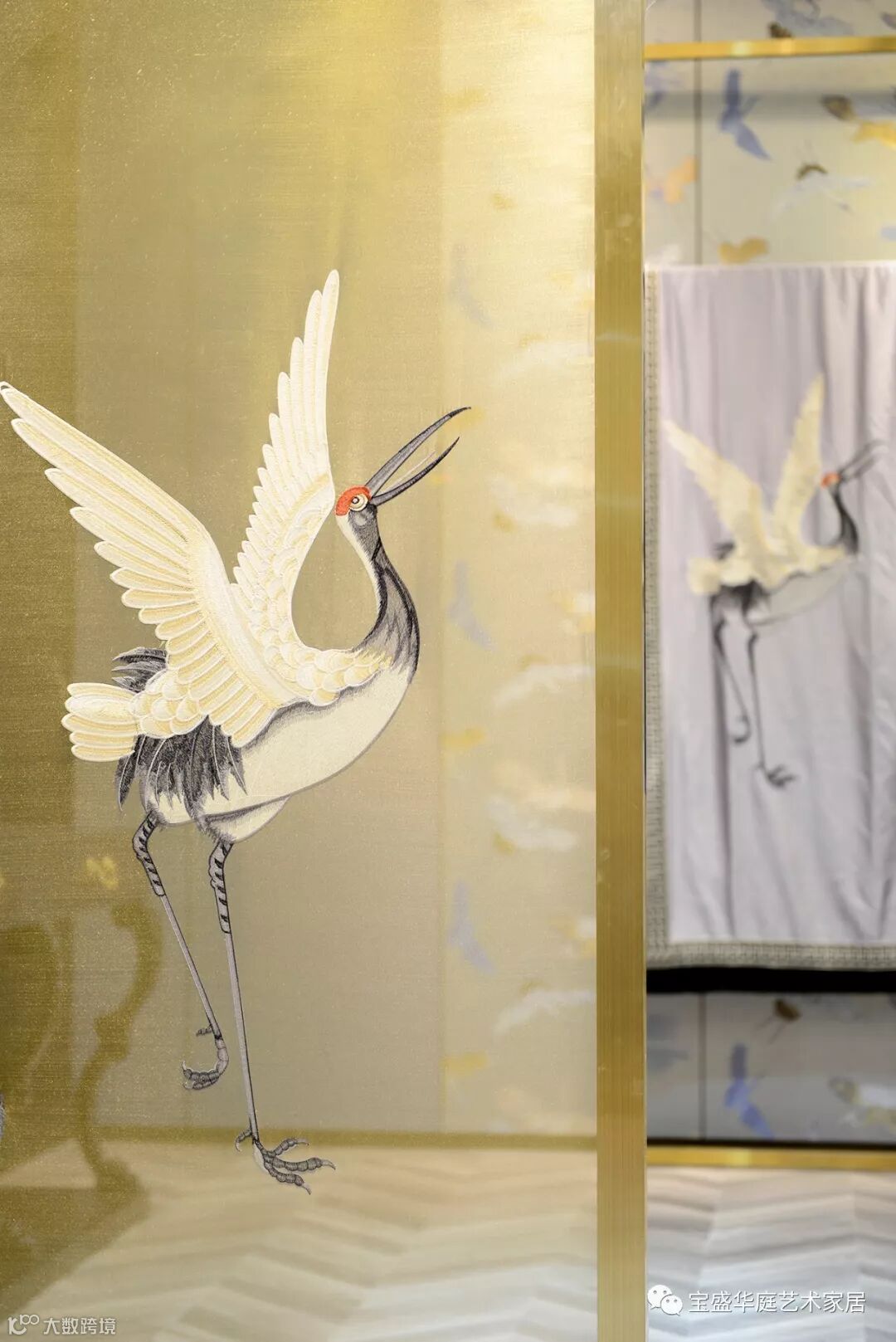 仙鹤代表的吉祥寓意也传播到海外,得到了越来越多的设计师的应用。富有东方民俗特色的仙鹤元素通过精致的图案细腻表达,深入的将传统刺绣元素与现代结合,在当下追求时尚品味的家居设计中,表现出独有的韵味。