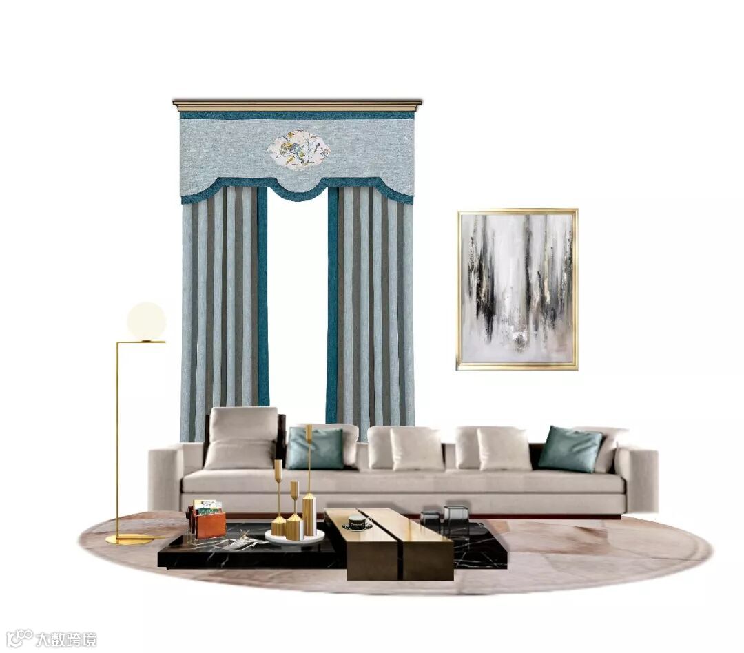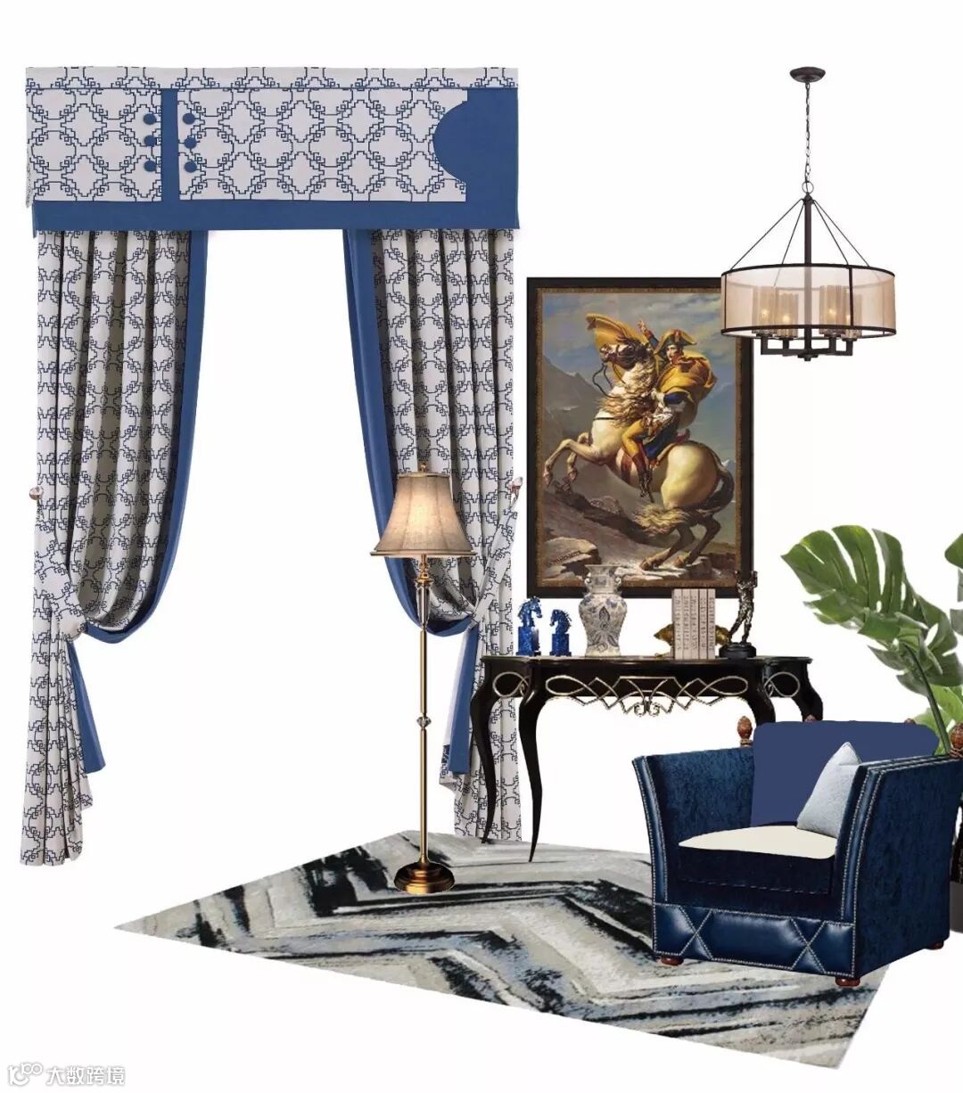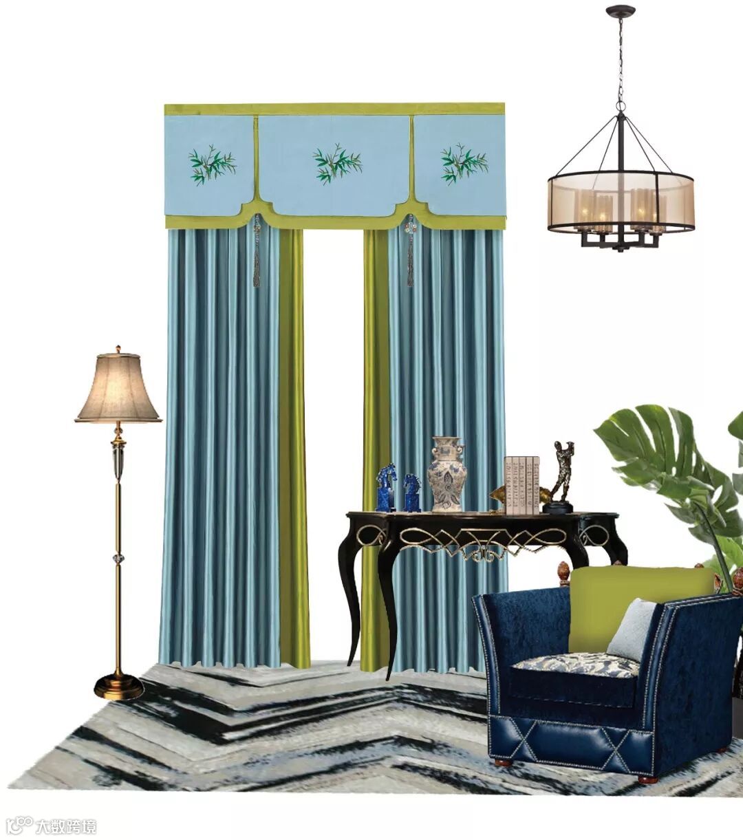 优雅的青色窗帘,浓郁的色泽犹如矗立的青松,笔挺的身姿为空间更添了一份刚硬。青色搭配其他的空间色彩,使整个空间更加饱满。