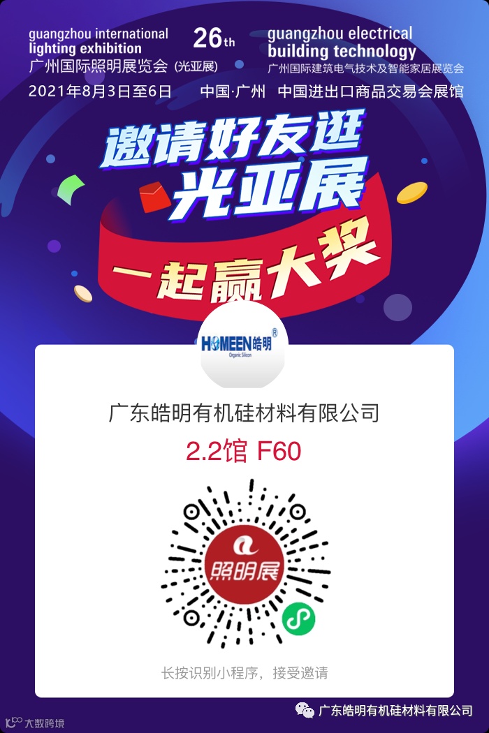 皓明有机硅诚邀您莅临2.2馆 F60