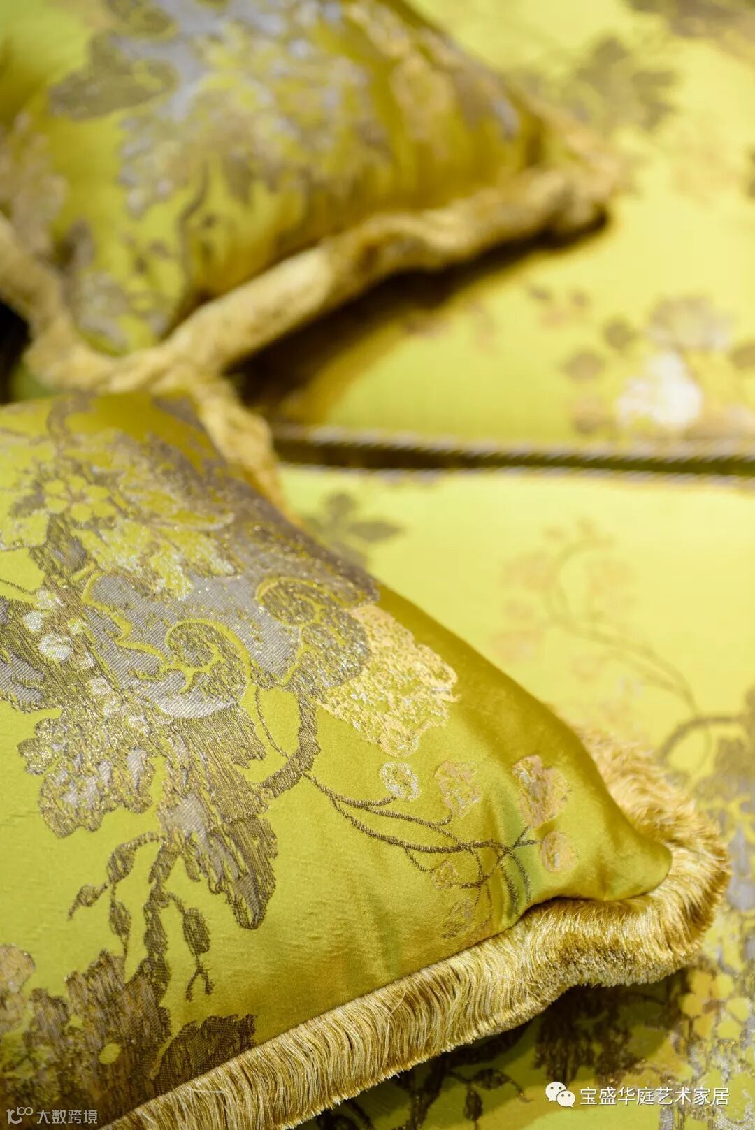 装饰帝国黄色床尾凳及抱枕