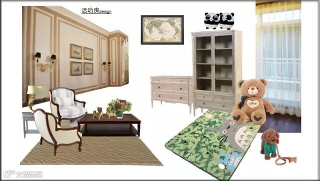 当然不能忘记给Baby设计一块可以活动的地方,午后阳光撒入,利用纱帘的透光可以减弱阳光的强度。