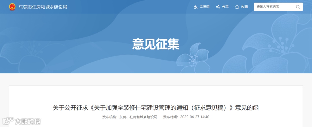 而东莞市住建局紧跟其后,近日发布《关于加强全装修住宅建设管理的通知(征求意见稿)》,拟鼓励2025年5月1日起办理施工许可的新建住宅项目实行全装修!