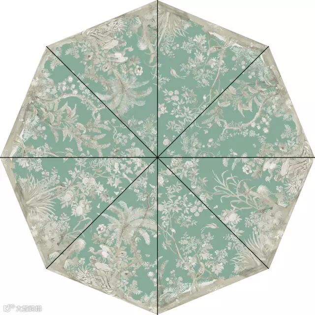 客户选用《锦年-湖绿色》这幅壁画,这幅壁画并不符合多边形的异形结构。