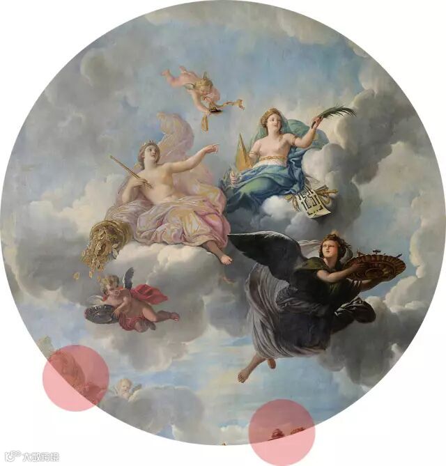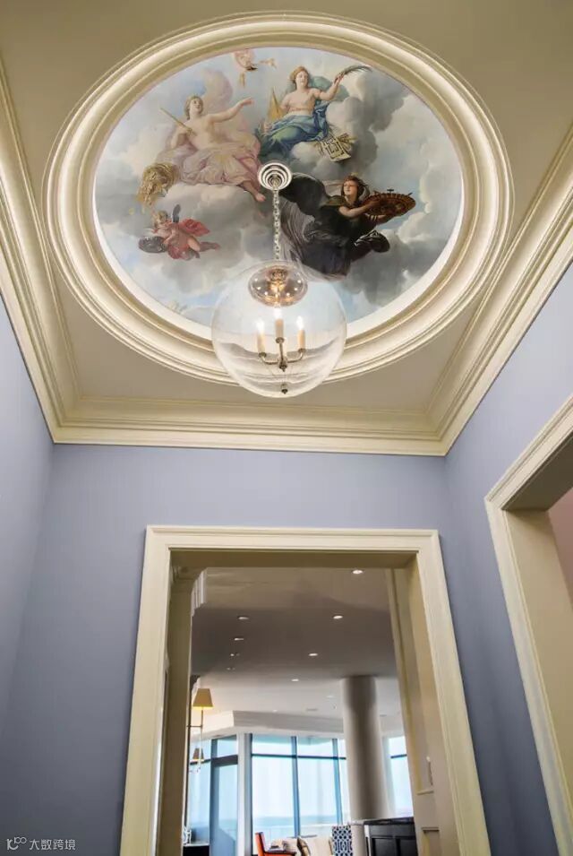 客户选用《天使礼赞》这幅壁画,基于圆顶的尺寸,对这幅画进行圆形构图。