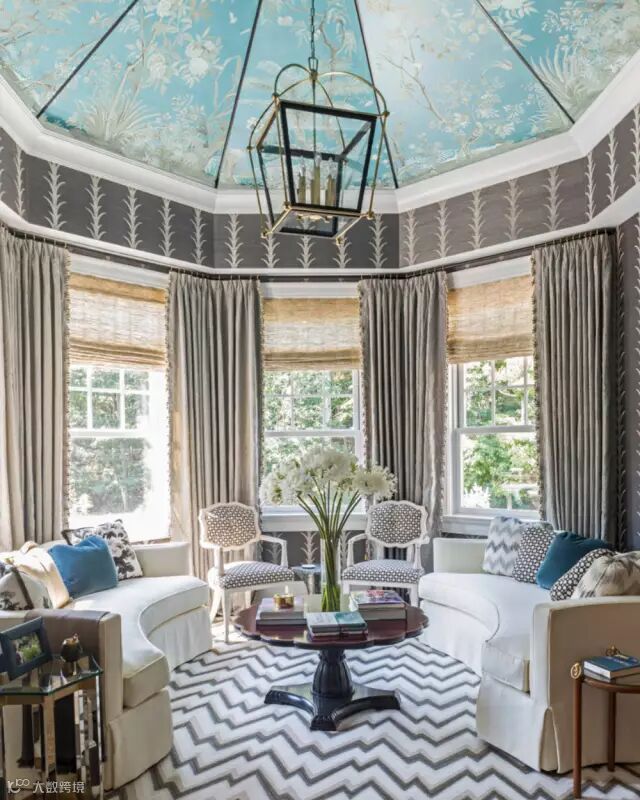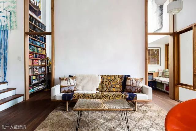 这是简约混搭风格的复式客厅,层高达到5米左右,沙发背景墙墙面达到4米多。
