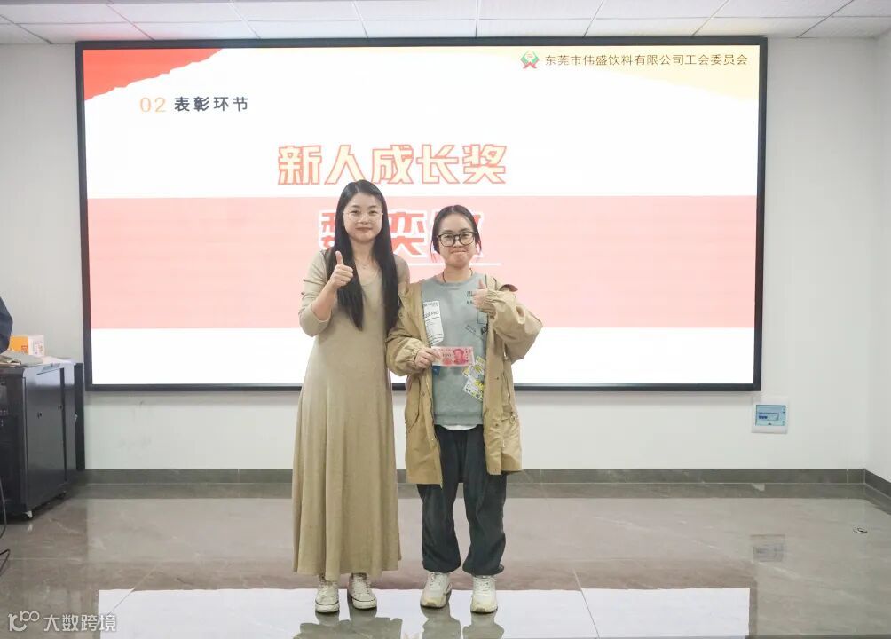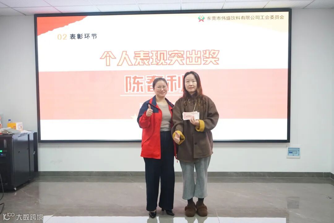 伴随着激昂的颁奖音乐,表彰大会进入颁奖环节。公司卢总与人事部陈经理依次为获奖团队与个人颁发奖金,每一次笑意都饱含肯定,每一张笑脸都洋溢着自豪。