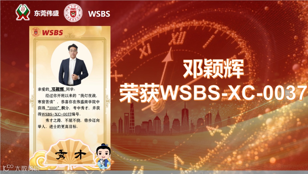 第37号“秀才”诞生! 商学院黄院长亲自为这位勤学不辍的佼佼者颁发证书。这不仅是对个人努力的嘉奖,更是对所有学员的激励:“持续精进,终见荣光”。