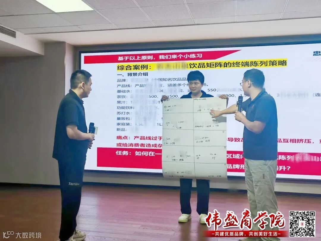 学员们分组PK,针对“货架布局”“节日堆头”等真实场景展开设计。现场草图飞扬、讨论热烈,短短十几分钟竟产出多套可直接落地的方案!陈导师逐一点评,直击痛点,让学员恍然大悟:“原来陈列不是摆货,是心理战!”