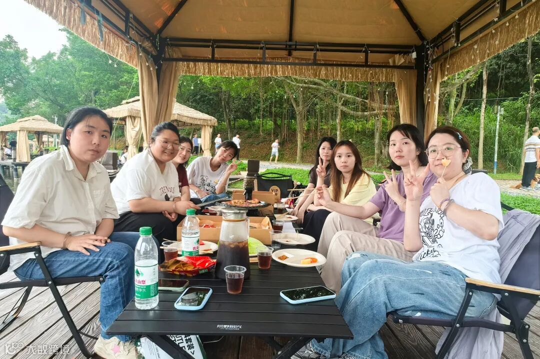经过一番欢乐的游戏和创作,大家的肚子都开始咕咕叫了。此时,香气四溢的烤肉环节适时而至,为这场团建活动增添了一份诱人的烟火气。