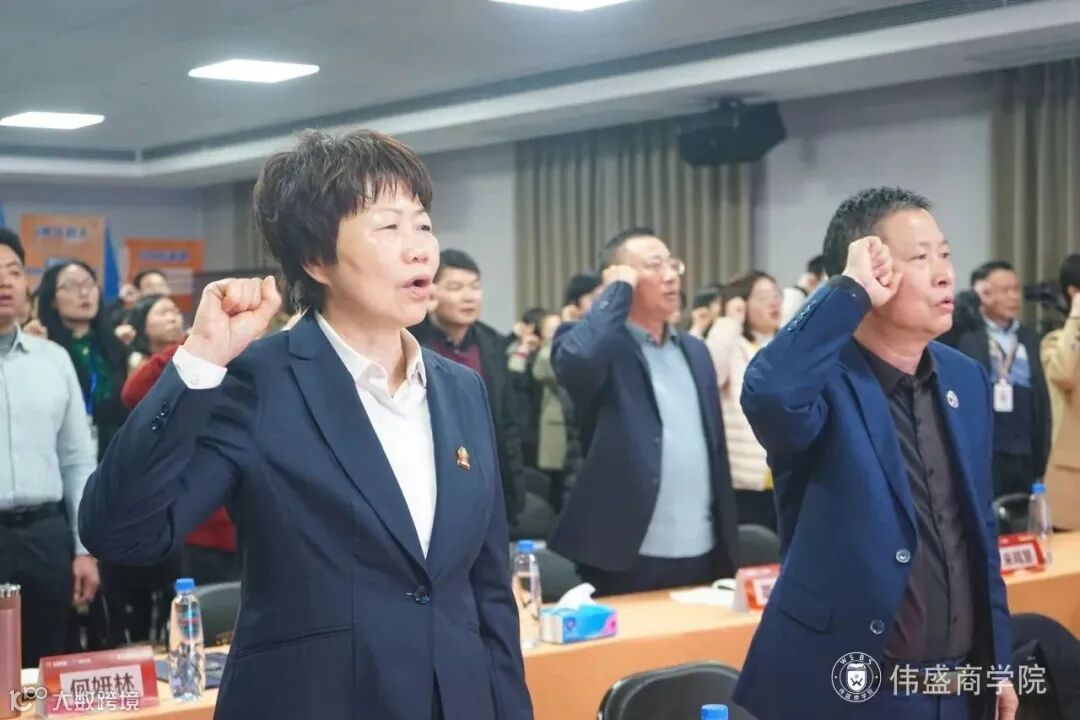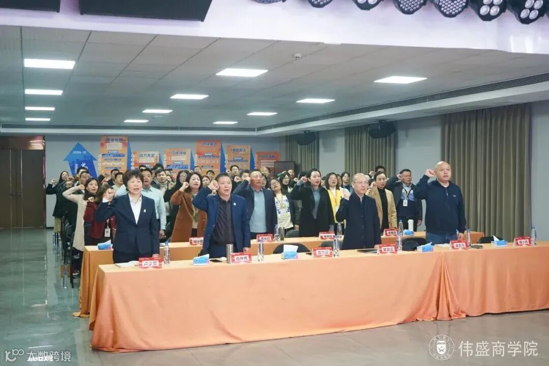 会议重要环节,黄院长带领着全体人员起立宣誓,震耳欲聋的宣誓声推向仪式的高潮,以此激发伟盛商学院学员的责任感、使命感,强化学员的先进意识、模范意识。