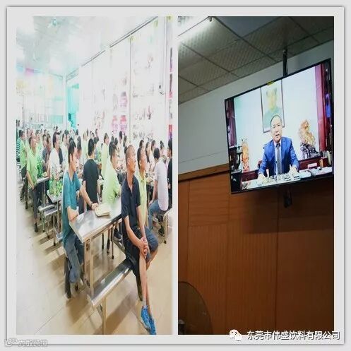 开餐之余,大家都在全神贯注的看公司的宣传片,聆听黄董讲话。