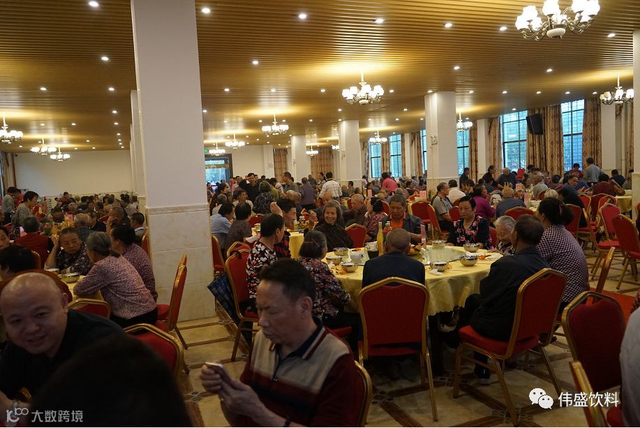 黄董宴请石厦村老人进行丰盛的晚餐