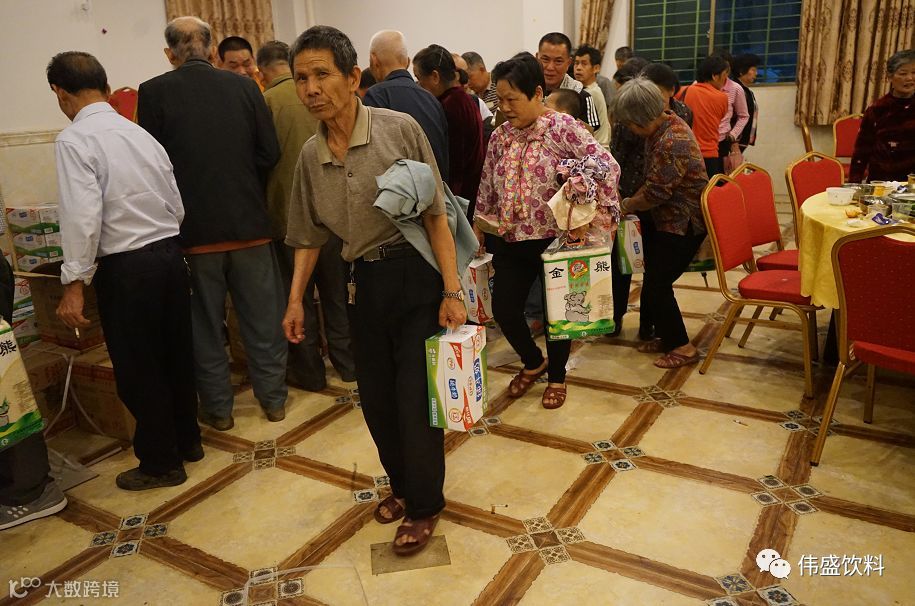 关心帮助老年人是全社会的责任,伟盛饮料黄董已连续两届参加石厦村“娘母会”尊老敬老活动,并给老人带来了慰问品和丰盛的晚餐,伊利牛奶、大米、饮料、红酒、白酒一批,共计约22万元。