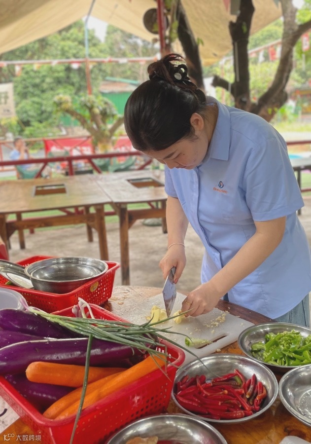 同事们分工明确,有人负责备菜切菜,有人捣鼓着煮菜,有人忙着为大家烧烤。不一会儿,烧烤架上也摆满了各式各样的美食。当炭火熊熊燃起,食物在烤架上滋滋作响,香味瞬间弥漫开来。大家围坐在一起,边烤边吃,欢声笑语不断。
