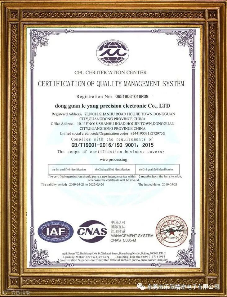 认识一下电子线束行业的ISO 9001质量认证,对电子线束质量的讨论是制造商是否拥有的质量认证,而ISO 9001认证是电子线束行业中常见的质量认证体系,下文由乐阳模具连接线工程师来为大家详细讲解电子线束行业的ISO 9001质量认证知识。