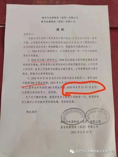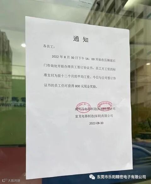 而对于网上发出的这则通知,陈先生表示,确实是工厂发出的。“你看到的这个通知里面还有几处错误,后面8月30日公司还发了一则通知,基本赔偿方案就是按照之前通知里面的执行。”陈先生说道。