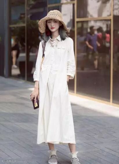 白色的裙子在搭配的时候本来就很容易显得单调,所以在选择搭配白色的时候,最好选择一顶具有特色的草帽,如此下来就不会担心单调的,并且在选择鞋子的时候可以增添一些袜子的配饰,一身搭配就会有时尚感。