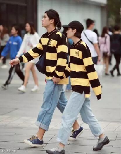情侣装搭配的时候总是会选择相同的元素以及风格,蜜蜂条纹的搭配也是很多时尚达人们会喜欢的风格,再加上阔腿裤的搭配就很容易显得出这其中的时髦感。