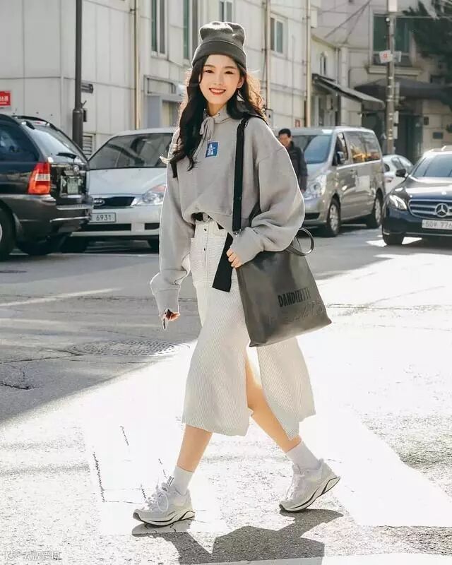 经典的黑白灰三色的搭配,一双小白色更好打破了黑灰的的沉闷感~