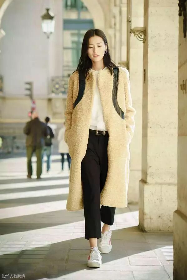 也可以乖乖做个文静女孩,刘雯大表姐的九分裤搭一双白色帆布鞋,文艺小清新十足~