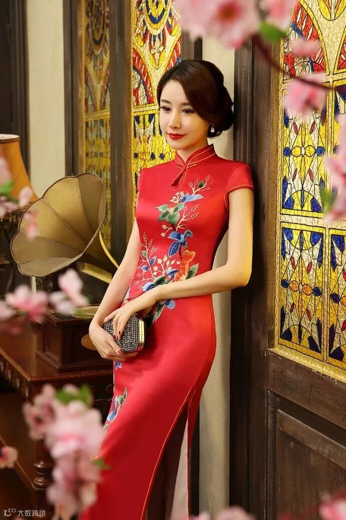 红色与旗袍的结合是再适合不过了,它既有复古的风韵,又有时尚的创新,穿在任何年龄段的女性身上,都能给人眼前一亮的感觉。