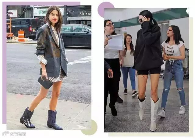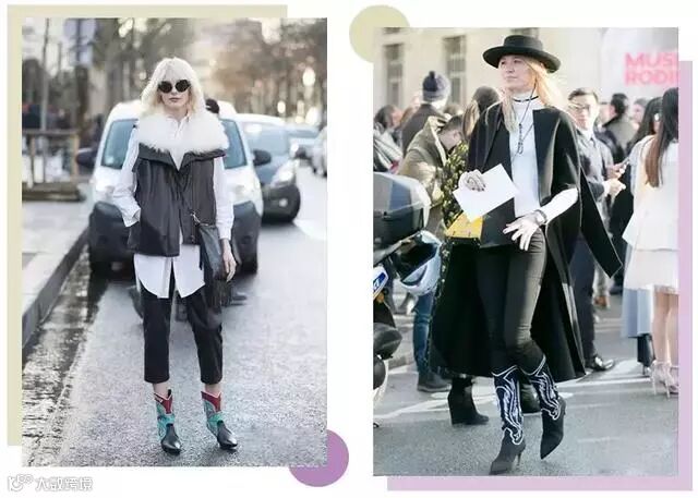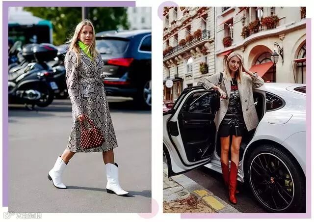 今年比较流行的款式是牛仔靴,如今的牛仔靴为了更时髦百搭也做了一些改良,加入了更多时髦的元素。靴在近期潮人街拍中,时髦精们也纷纷为牛仔靴疯狂打Call