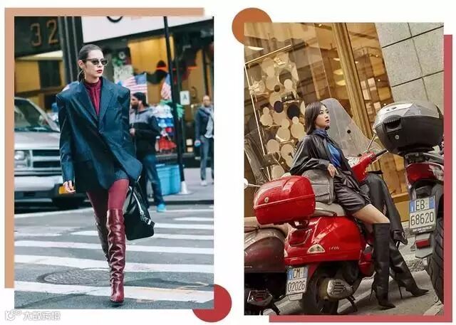 一双长靴既能保护双腿不受冷风侵袭,又能分分钟拗出时尚感和大气场。搭配短裙短裤或者是下衣失踪都是最最时髦的穿法~