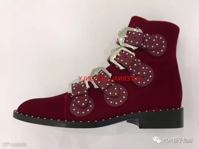 不少奢侈品牌将市场转向年轻一代,Givenchy将金属质感的特殊针扣搭配靴子款式,并以铆钉加以辅助装饰,朋克叛逆。