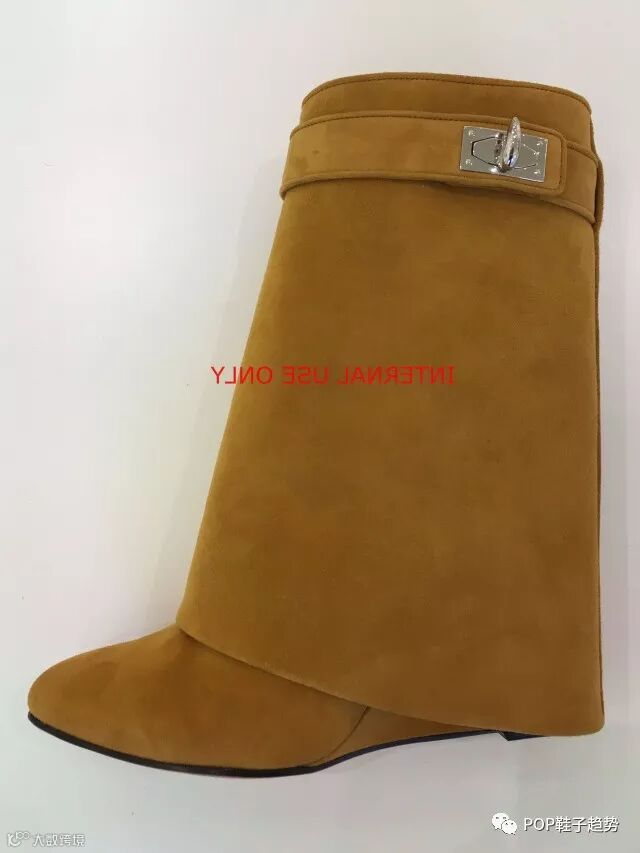 将面料翻折至脚面,独特另类且更加保暖,并将金属鞋扣加以装饰,打造出Givenchy特有的强势风格。