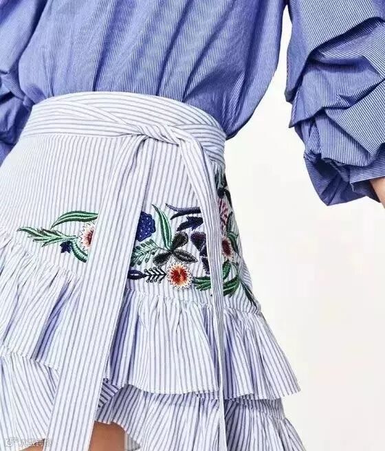 荷叶边元素,这两年荷叶边元素就很流行,它本身的文艺范儿也挺强。你在商场或者网上选购款式的时候,就可以考虑荷叶边元素,新的尝试也会让穿衣更有趣。