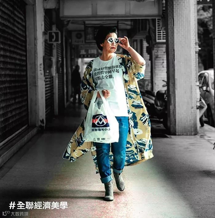 到了2017年,全联超市又将经济美学主张印在了T恤上,摩登的爷爷奶奶也紧追潮流,传达了属于自己的经济美学。