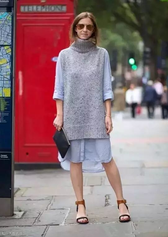 无论是裙子还是裤子,毛衣+衬衣的组合都可以让整体更有造型感。
